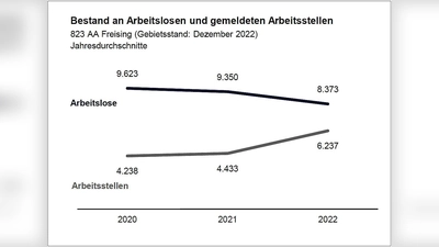 Arbeitslosigkeit: Die Agentur für Arbeit Dachau zählte im Dezember 2022 insgesamt 2.100 Arbeitslose und somit 125 Personen mehr als noch im November 2022. Die Arbeitslosenquote stieg im Vergleich zum Vormonat um 0,2 Prozentpunkte auf einen Wert von 2,3 Prozent an. Im Dezember vor einem Jahr lag sie bei 2,1 Prozent.