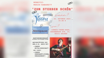 Ein alter Trinkspruch heißt: „Mögest du leben solange du willst, und es wollen, solange du lebst.“ Das Tabu, über den Tod und das Sterben nicht zu sprechen, existiert in der Gesellschaft bis heute. Das gilt nicht im Programm von „Atempause“ mit Karin Simon, Frank Wendeberg, Isolde Baldauf und Monika Zintl. Der Wunsch, würdevoll zu sterben wird genauso thematisiert wie der Umgang mit Trauernden. Wie kann man sich vorbereiten, damit auch das Sterben mit einem Lächeln und im Frieden gelebt werden kann? Was packe ich in meinen letzten Reisekoffer, der dann letztlich bei den Hinterbliebenen bleibt? Und zu guter Letzt gibt es einen todsicheren Tipp für das Ewige Leben! „Zum Sterben schön“ ist ein Kabarettprogramm zum Lachen, zum Weinen, zum Nachdenken und nicht zuletzt zum Genießen. Es sprüht nur so von Leben! Der Musikkabarett-Abend findet am Samstag, 26. Oktober, um 19 Uhr im Ludwig-Thoma-Haus (Augsburger Str. 23). Eintrittskarten gibt es ab sofort bei der Raiffeisenbank Volksbank Dachau eG.