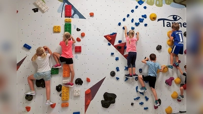 Für die Vorschulkinder des städtischen Kindergartens Purzelbaum ging es in der vergangenen Woche hoch hinaus: Sie besuchten im Rahmen der Aktion „Bouldern mit den Vorschulkindern“ die Kletterhalle der Naturfreunde – und kraxelten dort tatsächlich heldenmutig die 17 Meter hohe Wand hinauf.