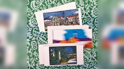 Die Sieger-Motive aus dem Künstler-Wettbewerb der Tourist-Information stehen ab sofort zum Verkauf. Zu je 2,50 Euro oder im Dreierset zu 6,90 Euro gibt es die Hofgarten-Ansicht von Christian Maria Huber, die moderne Stadtansicht von Bruno Schachtner und die Weihnachtskarte von Klaus Eberlein.